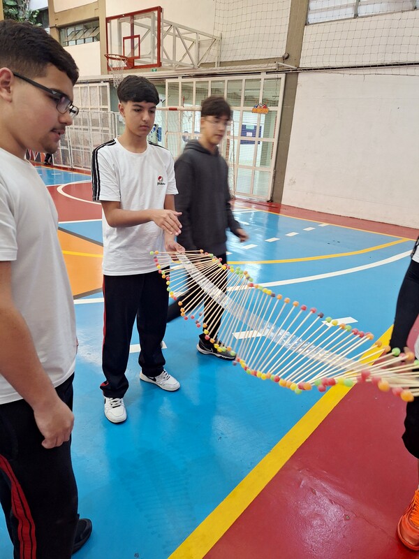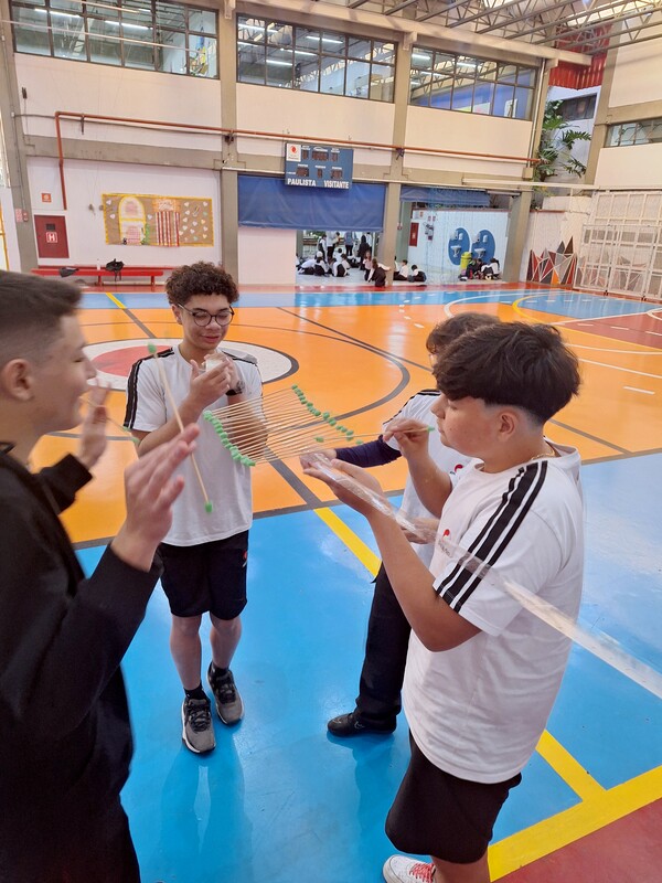 Com foco na prática, os alunos do 9º ano mergulharam no mundo da Física criando um protótipo de onda mecânica. Usando o som como modelo, eles puderam visualizar e compreender na prática algumas de suas propriedades, como a frequência, o tamanho da onda e o período.